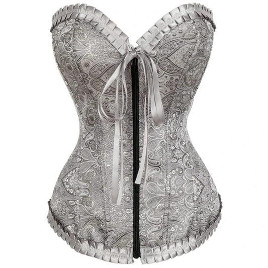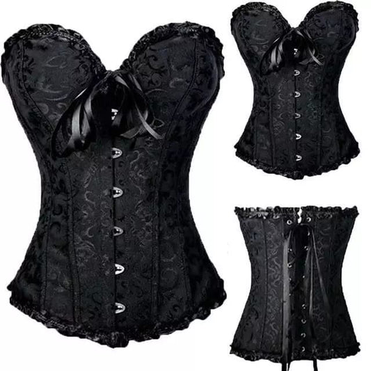 Classic Ivory Brocade with Black Satin Ruffle Detail Corset