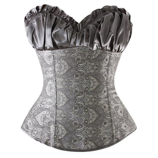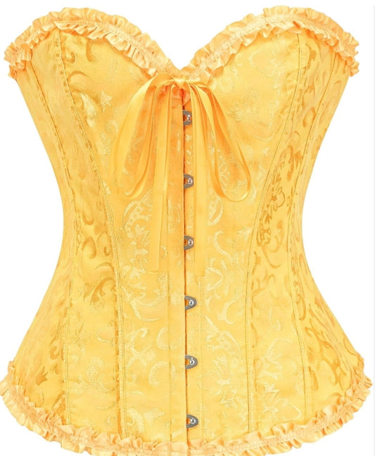 Vintage Self Patterned Satin with Sheer Frill - Pale Yellow OR Pale Blue Corset
