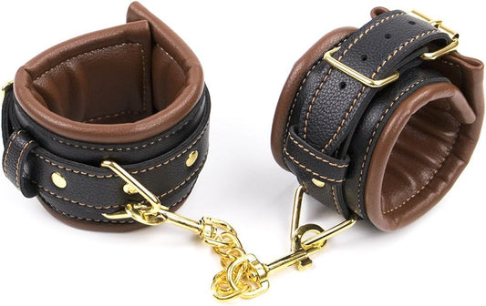 Pleather Gold & Brown BDSM Wrist Cuffs